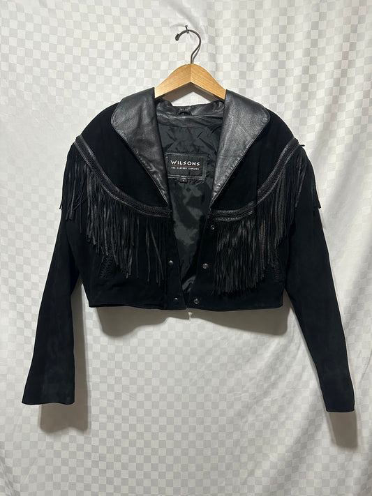 VINTAGE Wilsons Cropped Suede Fringe Leather Jacket | M