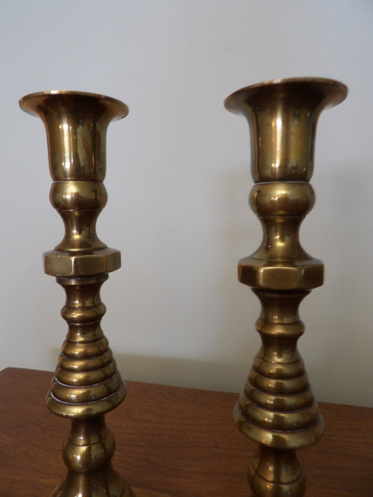 ANTIQUE Pair of Brass Old Colonial Beehive Candlestick Holders