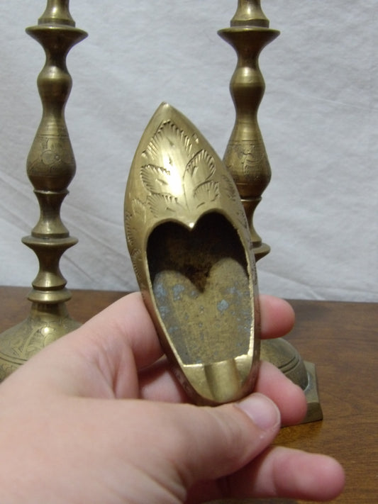 VINTAGE Etched Brass Shoe Ashtray