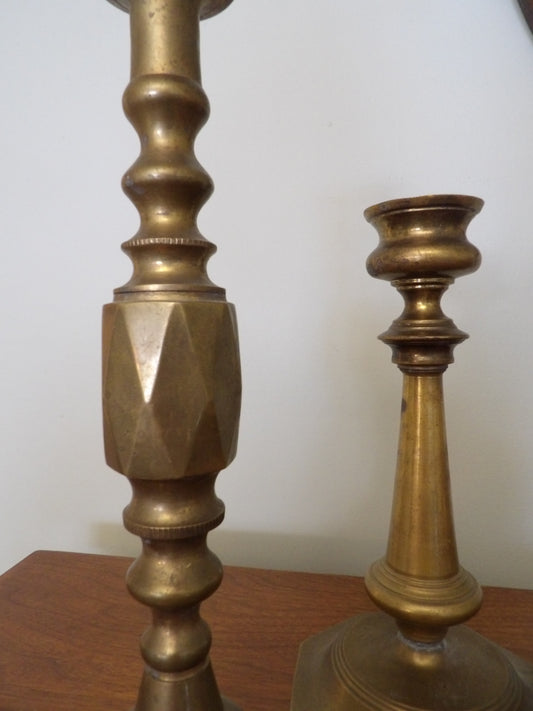 VINTAGE Mismatched Pair of Brass Candlestick Holders