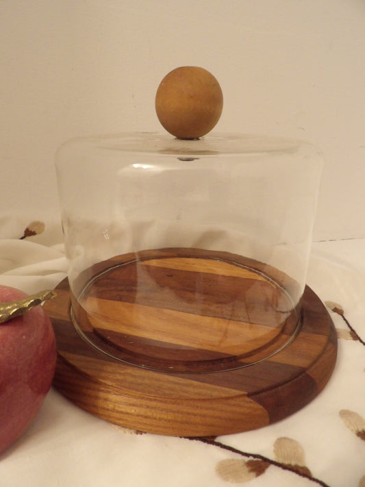 WOODEN Cheese Tray with Glass Dome