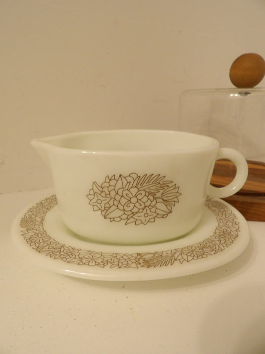 VINTAGE Pyrex Woodland Gravy Boat with Dish