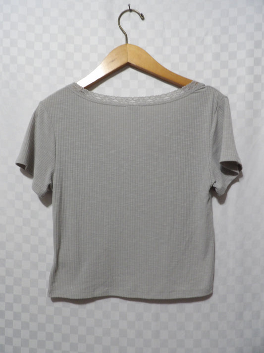 ME TO WE Ribbed Crop Top w/ Lace Neckline | M