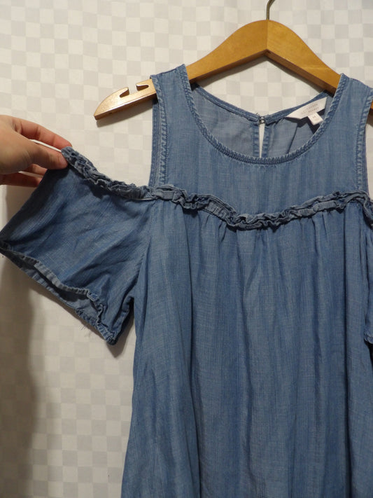 LAUREN CONRAD Denim Cold Shoulder Blouse | M