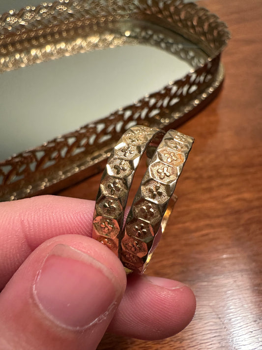 VINTAGE Engraved Gold Tone Open Ended Hoop Earrings